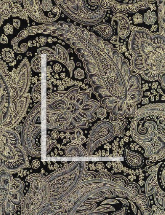 Timeless Treasures - Silver & Gold - Gold Metallic Paisley, Charcoal