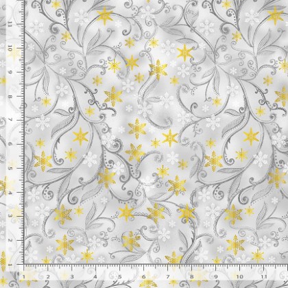 Timeless Treasures - Silver & Gold - Leafy Vines & Snowflakes, Dove