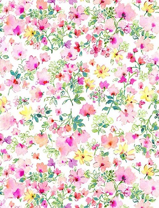Timeless Treasures - Spring Song - Watercolor Pink Spring Florals, White