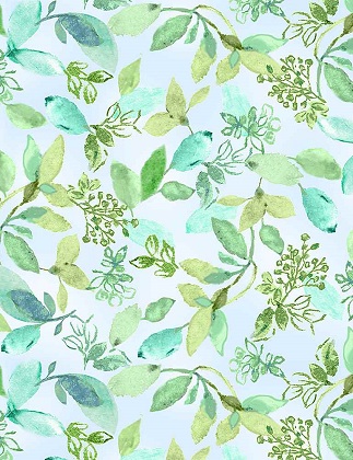 Timeless Treasures - Spring Song - Watercolor Varied Leaves, Aqua