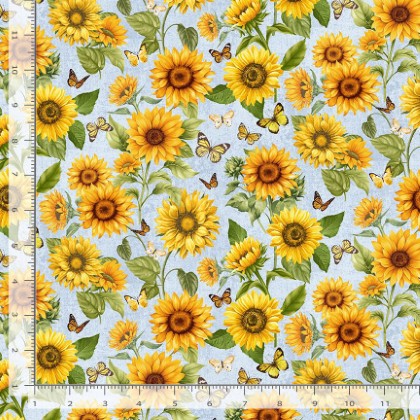 Timeless Treasures - Sunflower Farm - Tossed Sunflowers, Sky