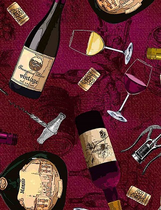 Timeless Treasures - Wine Cellar - (Wine) - Tossed Wine Bottles, Wine
