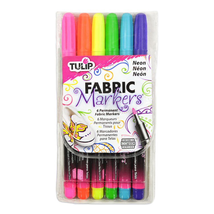 Tulip - Permanent Fabric Markers - 6 Fine Tip Markers, Neon Colors
