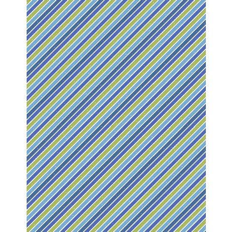 Wilmington Prints - Alpha-Bots - Diagonal Stripe, Blue/Green
