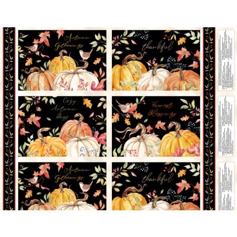 Many of us look forward to that first "Autumn Day" with its crisp, cool air, golden light & warming colors as in this new collection from Nancy Mink with watercolor-style pumpkins & leaves. You will get 4 placemats 11" x 16" or with a border 14' x 18" with this 24" panel.