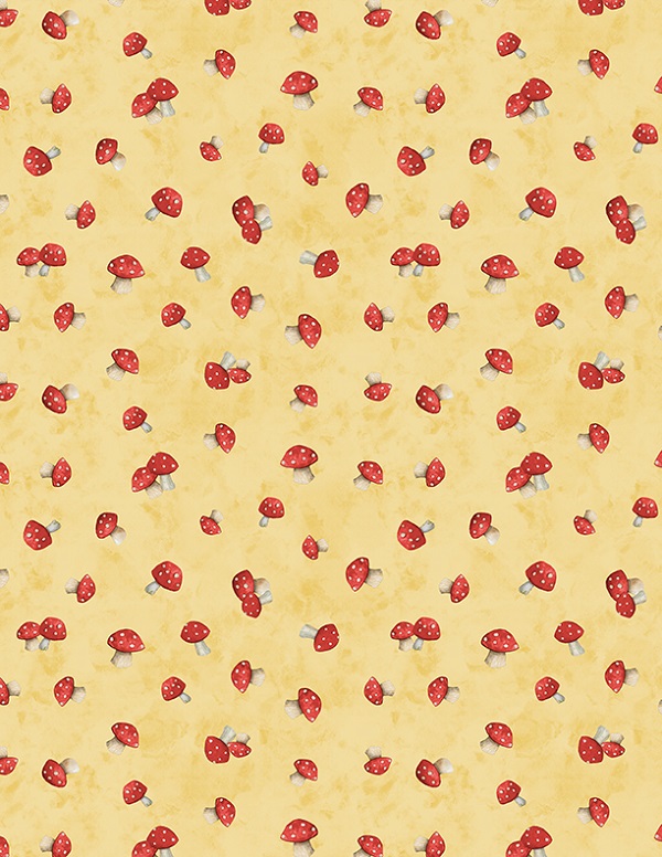 Wilmington Prints - Buzzin' With My Gnome-iezz - Mushroom Toss, Yellow