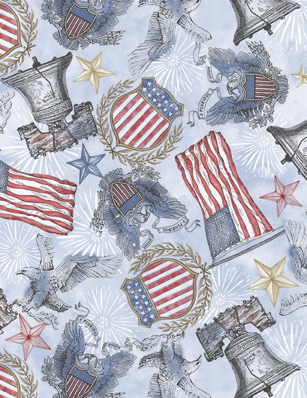 Wilmington Prints - Colors Of Courage - Patriotic Emblems, Blue