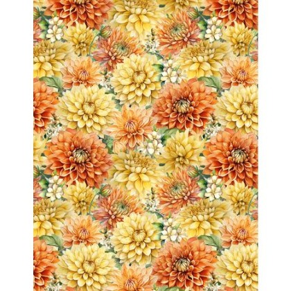 /Shopping/Fabric/Fabric (Shop By Manufacturer)/Wilmington Prints/Dahlia Botanica/Wilmington Prints - Dahlia Botanica - Packed Floral, Yellow/Orange