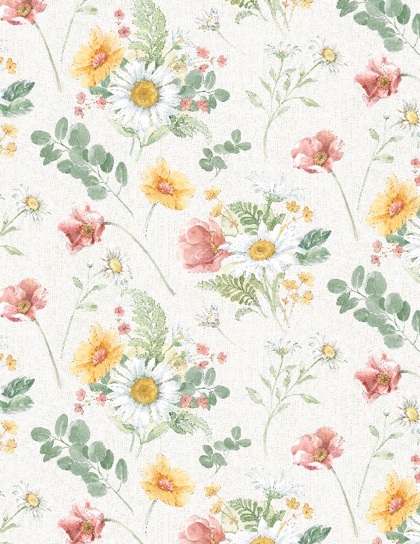 Wilmington Prints - Daisy Days - Large Floral, Cream