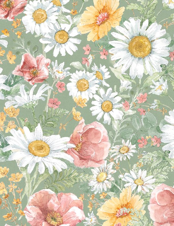 Wilmington Prints - Daisy Days - Packed Floral, Green