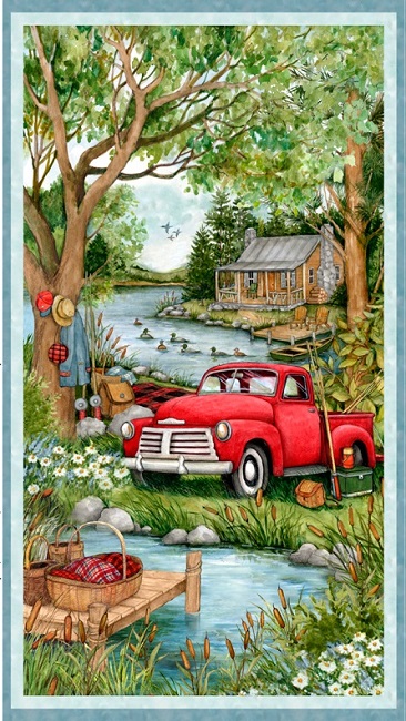 Wilmington Prints - Down By The Lake - 24" Red Truck Panel, Multi