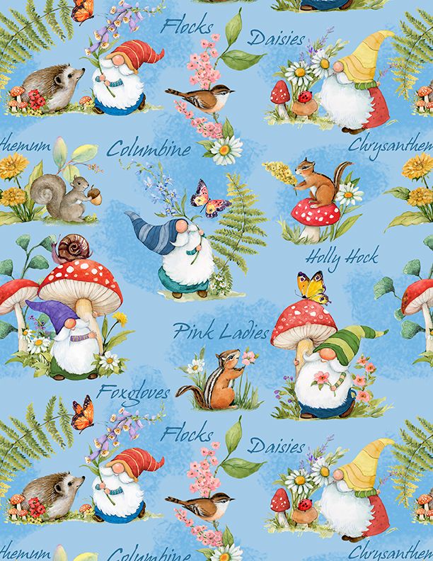 Wilmington Prints - Gnome-Grown - Gnomes All Over, Blue
