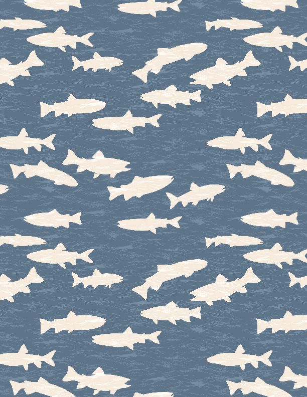 Wilmington Prints - Gone Fishing - Fish Silhouettes, Blue/Cream