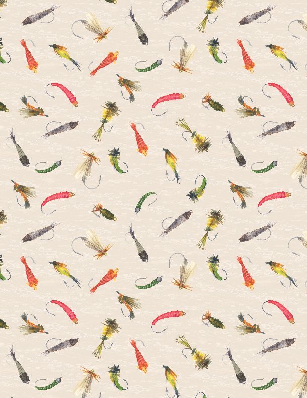Wilmington Prints - Gone Fishing - Fishing Lure, Cream