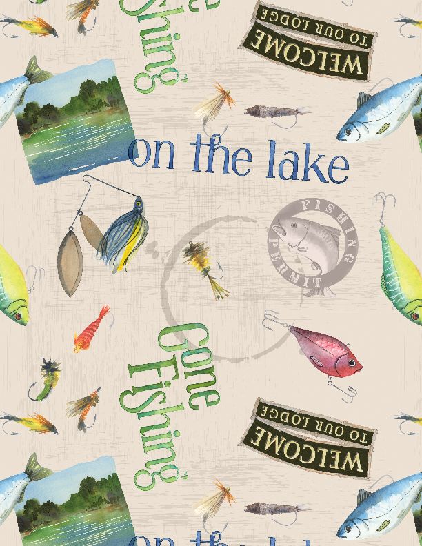 Wilmington Prints - Gone Fishing - Large Toss, Cream