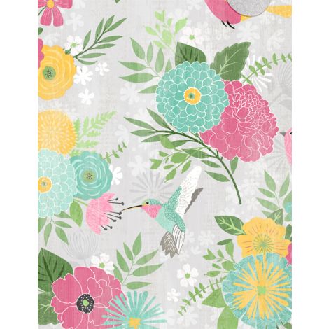 Designed by Anne Rowan. Sweet inspirational floral collection with encouraging phrases scattered among the flowers in fresh, sweet, happy colors of pinks, greens, blues and yellow. Cheer up a room with curtains, wall hangings or quilts.