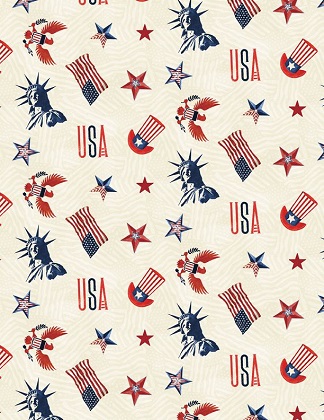 Wilmington Prints - Liberty Lane - Patriotic Toss, Cream