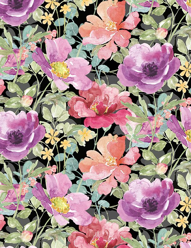 Wilmington Prints - Meadow Melody - Blossoms All Over, Black