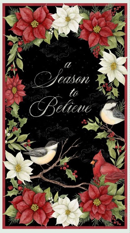 Wilmington Prints - Medley In Red - 24" Poinsettia/Chickadee Panel, Multi
