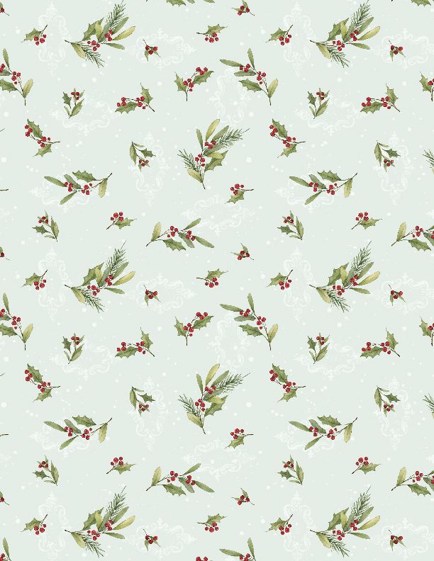 Wilmington Prints - Medley In Red - Holly Toss, Mint Green
