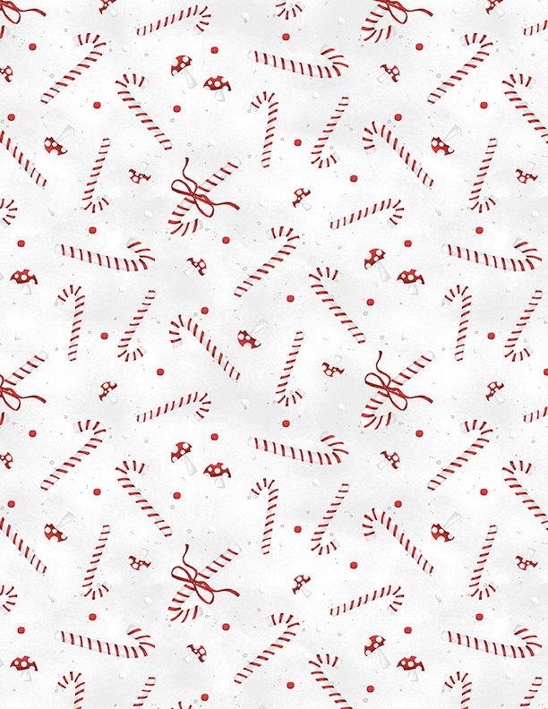 Wilmington Prints - Our Gnome To Yours - Candy Canes & Mushrooms, White