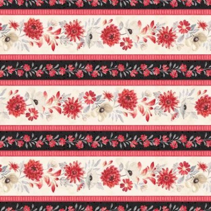 Wilmington Prints - Scarlet Dreams - Border Stripe, Multi
