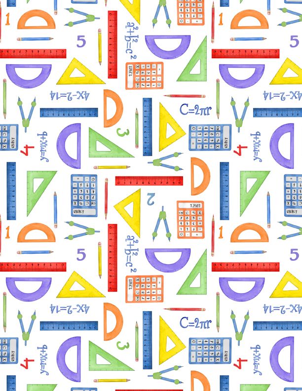 Wilmington Prints - School Is Cool - Math Supplies, White