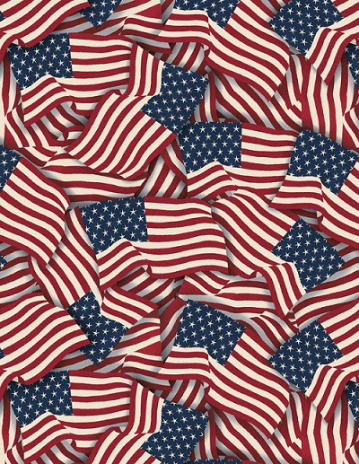 This new collection from Beth Grove, Stars of Valor features a large “stars & stripes” panel, a repeating stripe, a non-directional “patchwork”, packed flags, patriotic toss, star toss, chevrons, plaid, little stars and flag texture.
