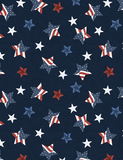 This new collection from Beth Grove, Stars of Valor features a large “stars & stripes” panel, a repeating stripe, a non-directional “patchwork”, packed flags, patriotic toss, star toss, chevrons, plaid, little stars and flag texture.