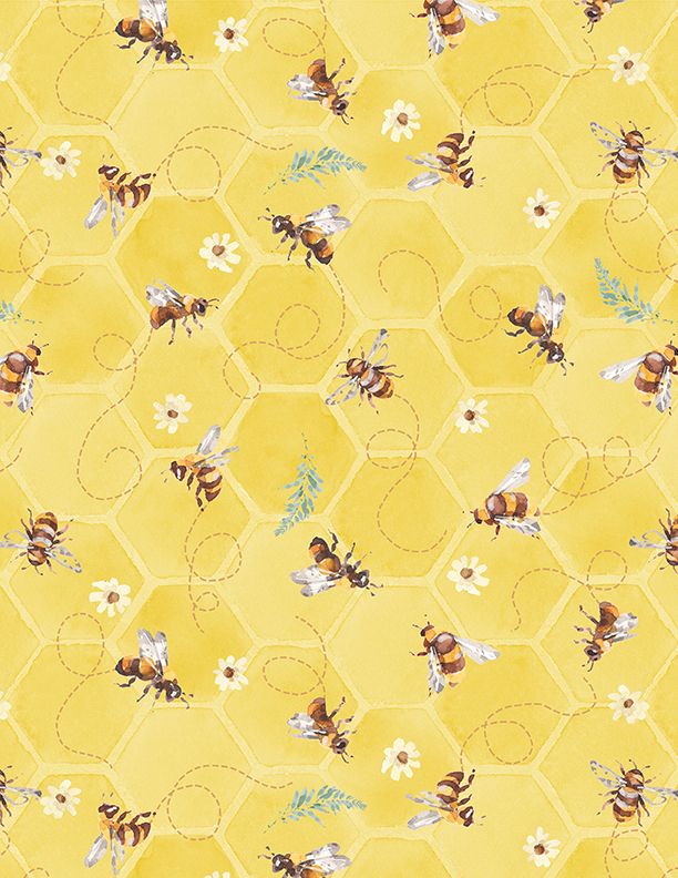 Wilmington Prints - Sunflower Sweets - Bee Toss, Yellow