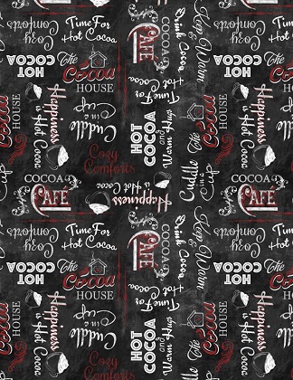 Wilmington Prints - Time for Hot Cocoa - Word Toss, Black