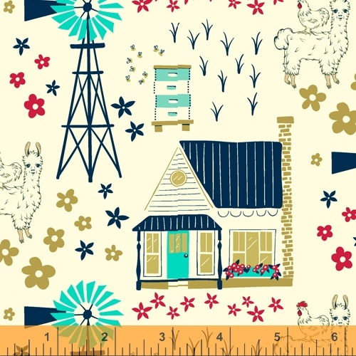 Sweet little homestead collection designed by Judy Jarvi. A few alpaca and some sheep around the windmill, chickens roaming around the yard. So nice and peaceful! Color palette is tans, blues, coral, and reds. Design a table runner or new curtains to bring the country life indoors.