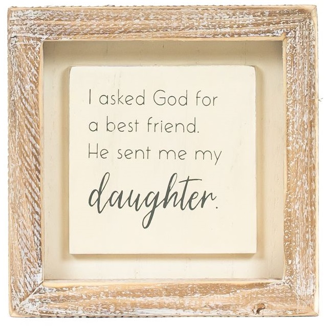 Wood Frame Sign, featuring the heartfelt message: "I asked God for a best friend. He sent me my daughter".