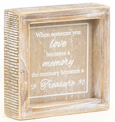 Our exquisite 5x5x1.5 wood framed sign, featuring the touching message "When someone you love becomes a memory, the memory becomes a treasure."