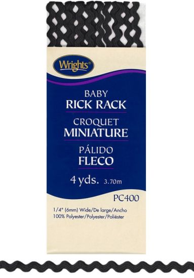 Wrights - Baby Rick Rack - 1/4" X 4 Yards, Black