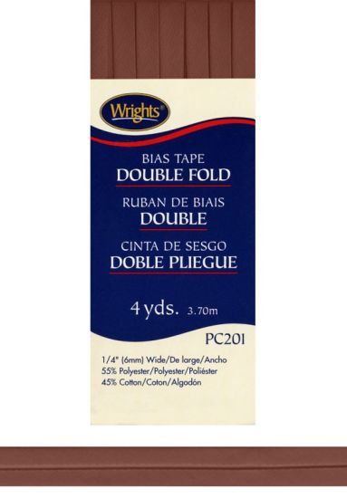 Wrights - Bias Tape Double Fold - 1/4" x 4 yd, Mocha