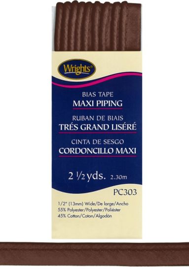 Wrights - Bias Tape Maxi Piping - 1/2" x 2.5 yd, Mocha
