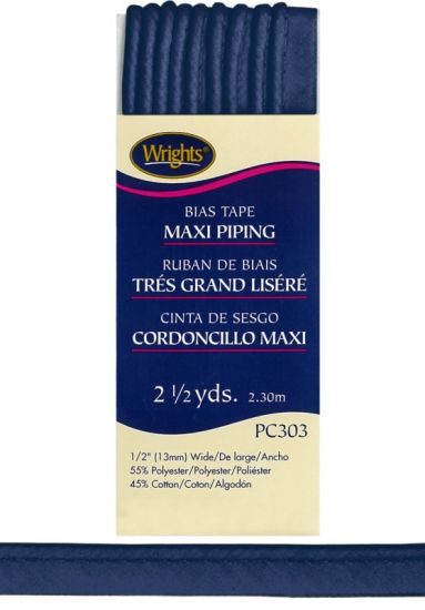 Wrights - Bias Tape Maxi Piping - 1/2" x 2.5 yd, Navy