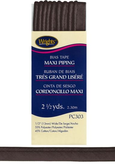 Wrights - Bias Tape Maxi Piping - 1/2" x 2.5 yd, Seal Brown