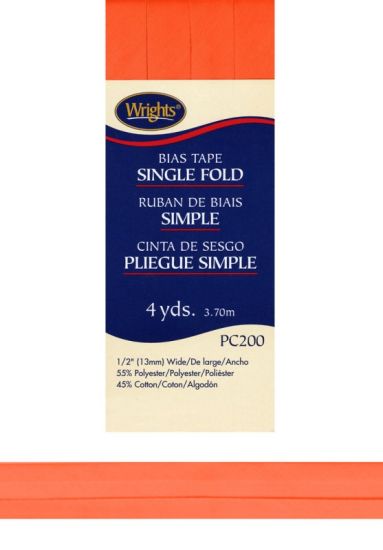Wrights - Bias Tape Single-Fold - 1/2" x 4 yd, Orange