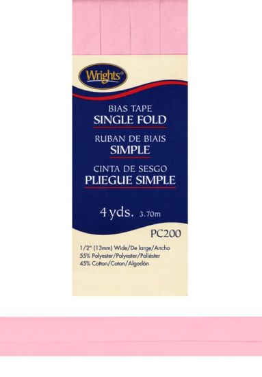 Wrights - Bias Tape Single-Fold - 1/2" x 4 yd, Pink