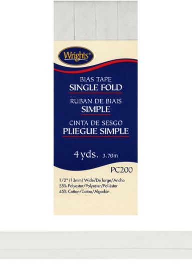 Wrights - Bias Tape Single-Fold - 1/2" x 4 yd, White
