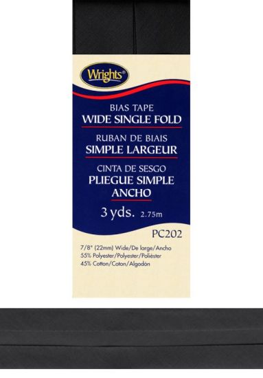 Wrights - Bias Tape Wide Single-Fold - 7/8" x 3 yd, Black