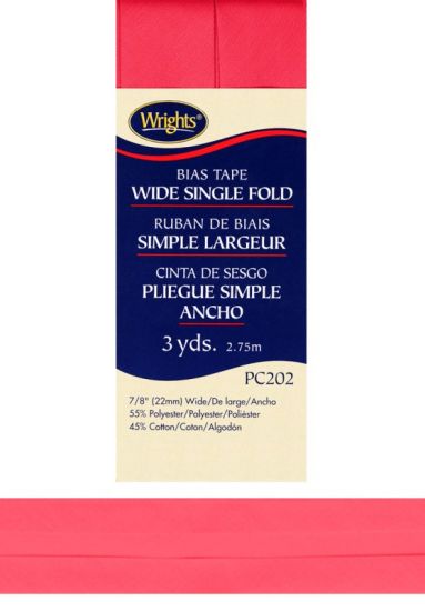 Wrights - Bias Tape Wide Single-Fold - 7/8" x 3 yd, Red