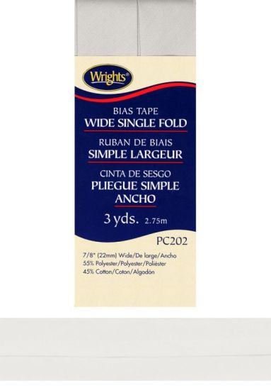 Wrights - Bias Tape Wide Single-Fold - 7/8" x 3 yd, White