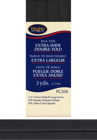 Wrights - Bias Tape X-Wide Double Fold - 1/2" x 3 yd, Black