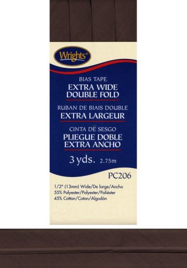 Wrights - Bias Tape X-Wide Double Fold - 1/2" x 3 yd, Mocha