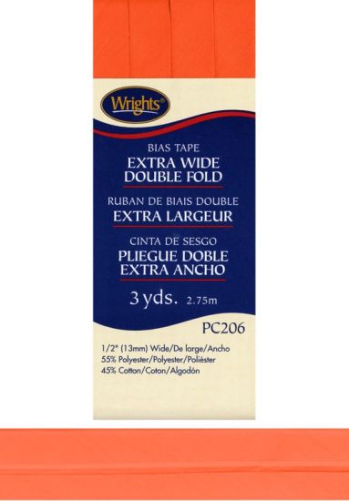 Wrights - Bias Tape X-Wide Double Fold - 1/2" x 3 yd, Orange