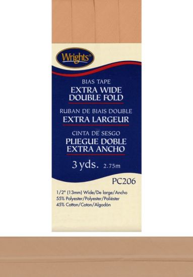 Wrights - Bias Tape X-Wide Double Fold - 1/2" x 3 yd, Tan