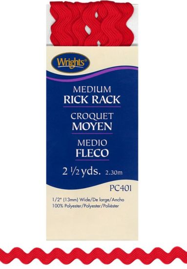 Wrights - Medium Rick Rack - 1/2" x 2.5 yds, Scarlet